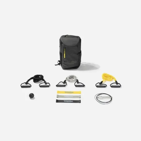 With this lightweight set of tools, you can get a workout anytime, anywhere. Warm up and practice agility drills with the Jump Rope, improve your tone and flexibility with the Loop Bands and Elastic Bands and decrease muscle soreness with the Mobility Ball. The entire kit fits into a sleek backpack and into your day.