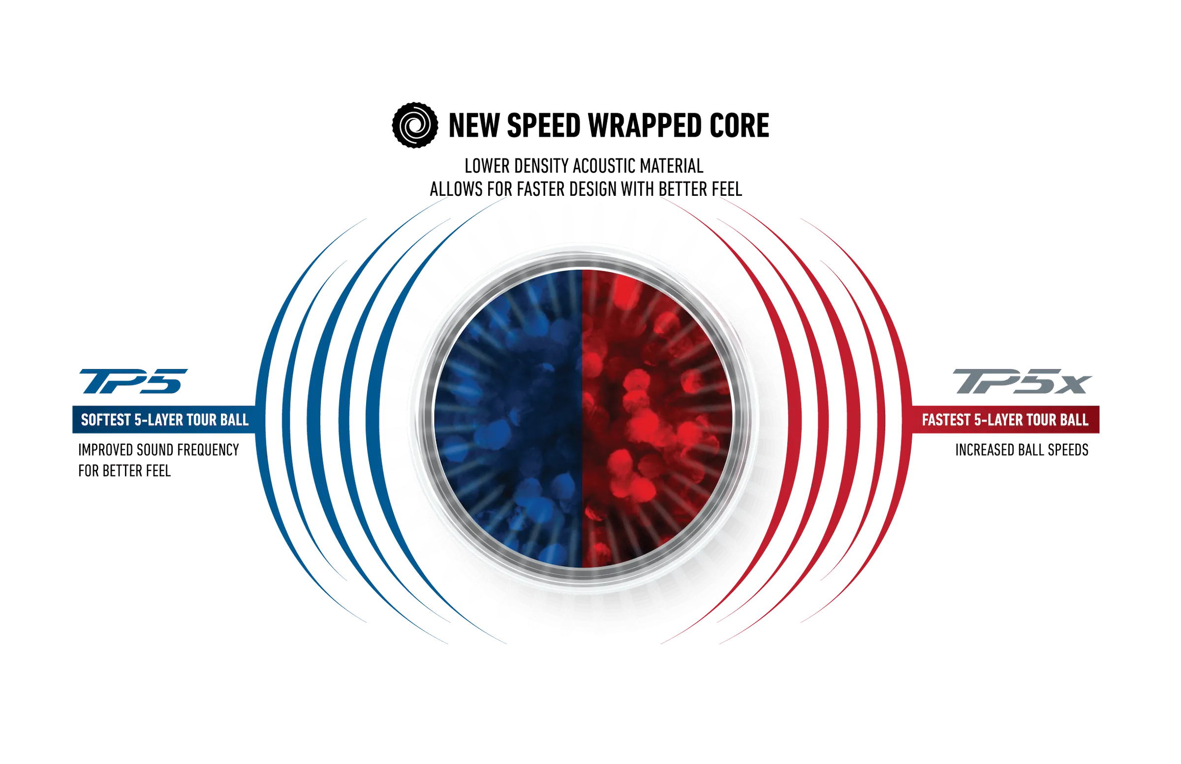 “Our learnings from countless player and Tour tests show that golfers, unsurprisingly, favor a softer more muted sound with added distance. Historically, the challenge has been the inability to improve one without negatively impacting the other. With this understanding, we’ve evolved our golf ball design process by uniquely decoupling feel and speed through material advancement, a complete departure from the conventional. The material-level advancement positions our TP5/TP5x family as having the best feel in the industry with faster constructions.”